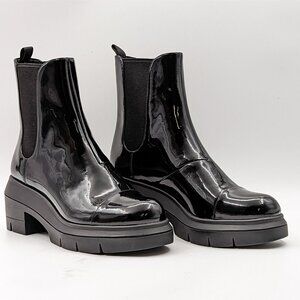 Stuart Weitzman Women Norah Chelsea Black Patent Leather Platform Boots size 9