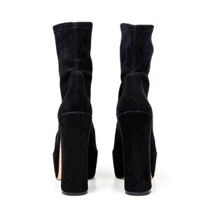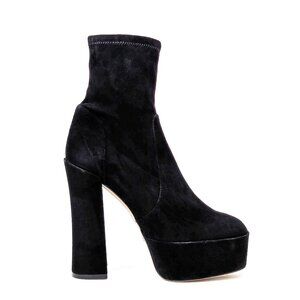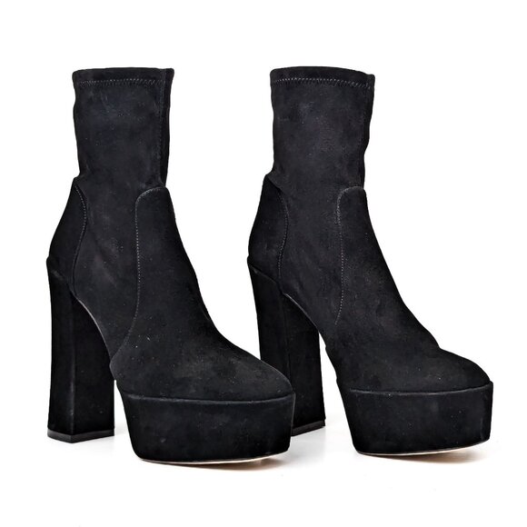 Stuart Weitzman Women Sky High Stretch Black Suede Platform Ankle Boots sz 9.5