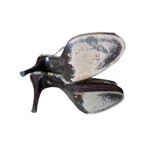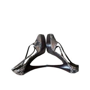 Stuart Weitzman Women Stewpot Platform Heels Tan Black Snakeskin Peeptoes 8.5h