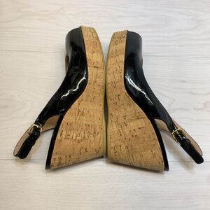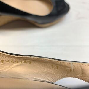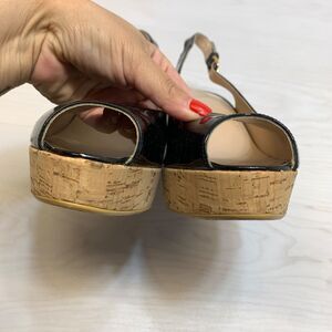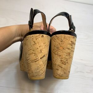 Stuart Weitzman Womens 11M Riveria Sandals Black Patent Leather Slingback Wedge