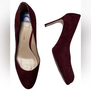 Stuart Weitzman Women's 5.5 Platform Suede Burgundy Stilettos Heel Pumps Shoes