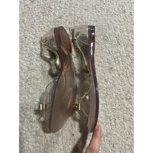 Stuart Weitzman Womens Size US 6 EU 36 Clear Aria Gold Bow Jelly Sandals Studded Strappy