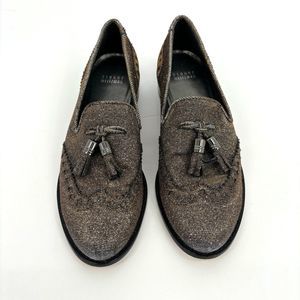Stuart Weitzman Womens 7 Leather Colorblock Pattern Metallic Gold Silver Loafers