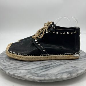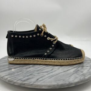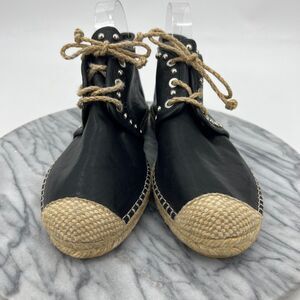STUART WEITZMAN WOMENS 7.5 ESPADRILLE BOOTIE BLACK LEATHER STUDDED JUTE LACE