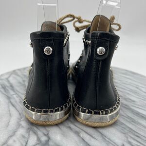 Stuart Weitzman Womens 7.5 Espadrille Bootie Black Leather Studded Jute Lace