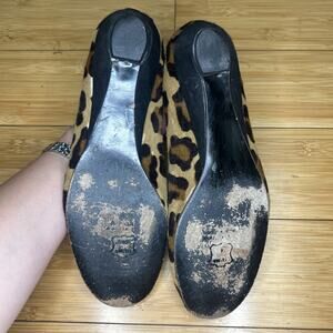 That’s shoes are in very good preowned condition and have no rips, holes, scratches or stains with normal wear on the soles. On the bottom of the left shoe there are 2 very small spots missing pony hair, but is not visible while wearing the shoes.