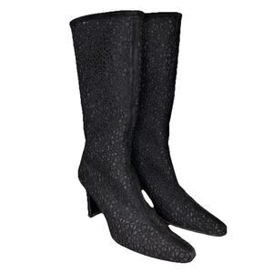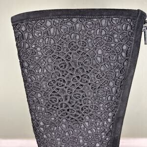 Stuart Weitzman Women’s 7.5AA Boots Black Lace Cutout Suede Mid-Calf Heels Goth