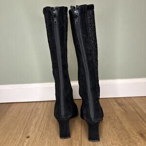 Stuart Weitzman Women’s 7.5AA Boots Black Lace Cutout Suede Mid-Calf Heels Narrow Goth
