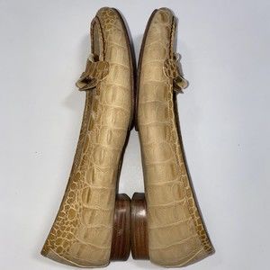 Stuart Weitzman Croc Leather Oval Buckle Moc Loafers in Beige Women's Size 7.5M