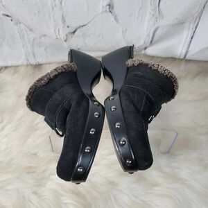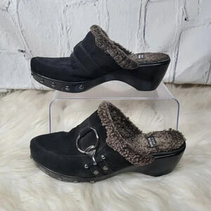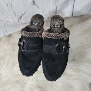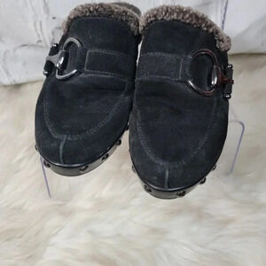 Stuart Weitzman Womens 8 Clogs Mules Slip On Shoes Black Suede Faux Fur Lined