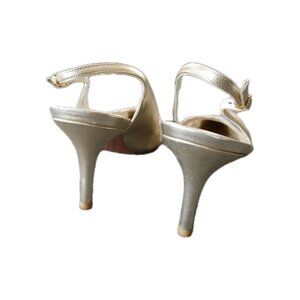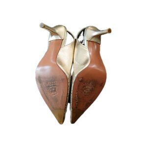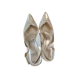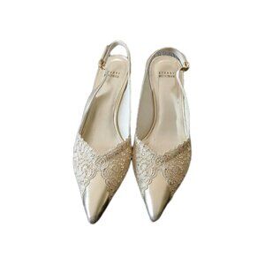Stuart Weitzman Womens 9 Pointed Toe Lace Slingback Gold Kitten Heels Pumps Glam