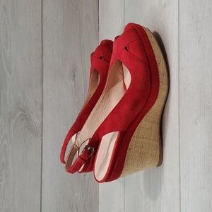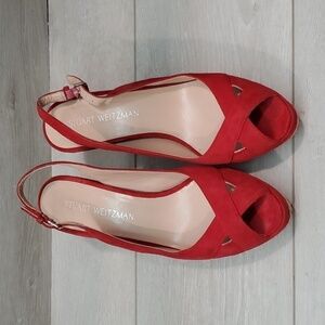 Stuart Weitzman Womens Ankle Suede Slingback Wedge Sandals shoes sz 7.5M