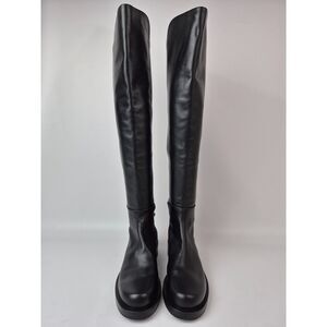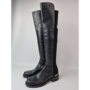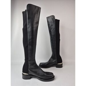Stuart Weitzman Womens Black 5050 Bold Leather Logo Over the Knee Boots Size 7.5