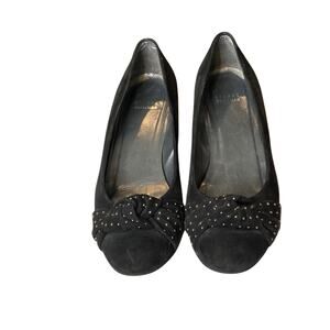 Stuart Weitzman Women's Black Dotsun Studded Bow Wedge Shoes Size 8M Career