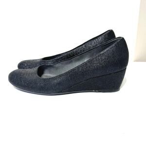 Stuart Weitzman Women’s Black Sojourn Goosebump Low Wedge Pumps Size 8 M