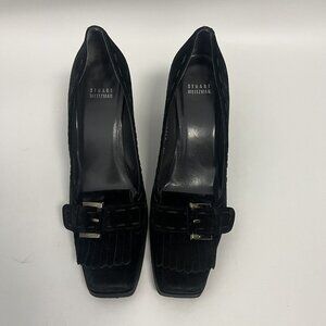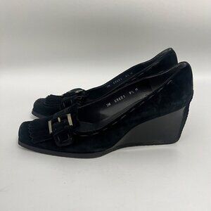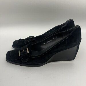 Stuart Weitzman Womens Black Suede Wedge Heel Buckle Slip On Size 8 M
