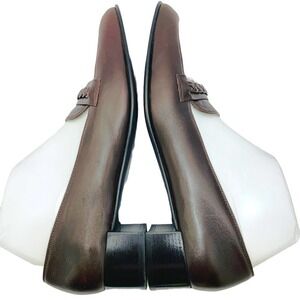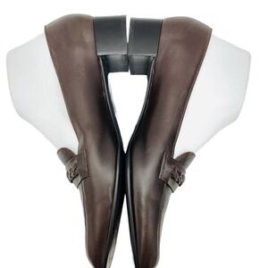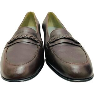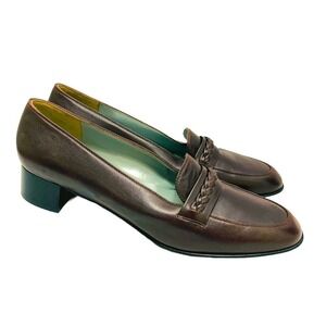 Stuart Weitzman Women's Braided Detail Brown Stacked Heel Slip-On Loafers 9.5