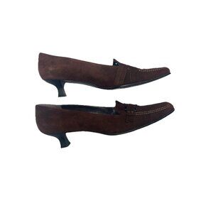 Stuart Weitzman Womens Brown Suede Leather Kitten Heel Shoe Size 8-1/2 N Buckle