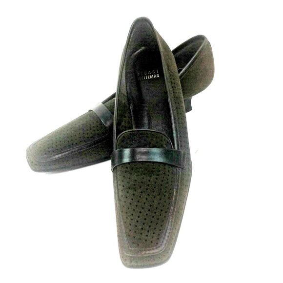 You are looking at a pair of Stuart Weitzman Womens Chocolate Perforated 1.75 Kitten Heels Size 6W.
