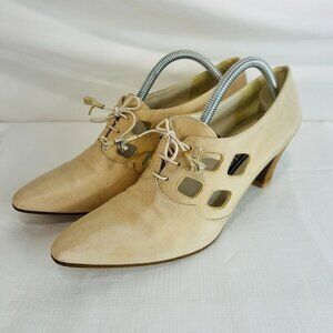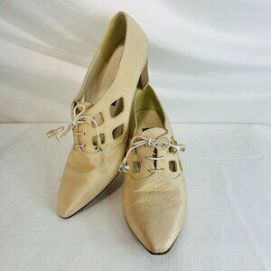 Stuart Weitzman Women's Cream Pointed Toe Bootie Lace Up Cuban Heels size 10