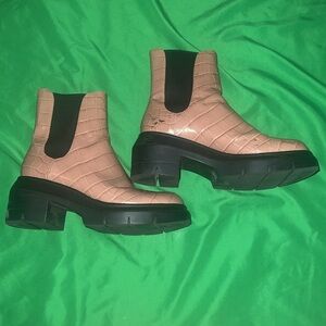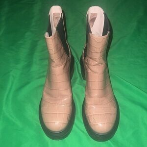 Stuart Weitzman Women's Croc-Embossed Ankle Combat Boots in Tan size 37
