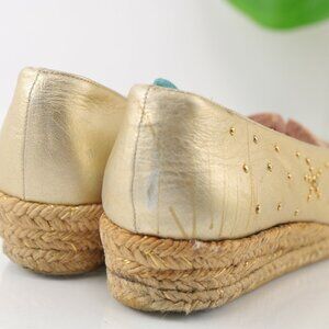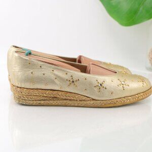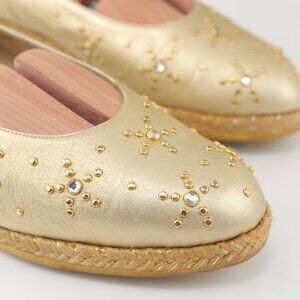 Stuart Weitzman Womens Espadrille Flats Size 5 W Gold Leather Beaded Rhinestones