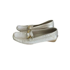 Stuart Weitzman Women's Gold Driving Narrow Width Loafer Shoes Size 7.5