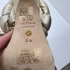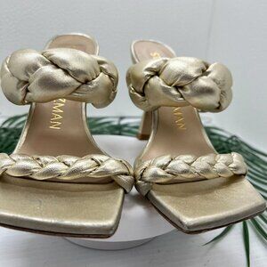 Stuart Weitzman Women's Gold Metallic Leather Playa Braided Sandals Size 5.5B