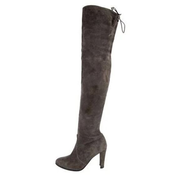 Stuart Weitzman Womens Highland High Heel Over the Knee Boot US 6 Grey Suede GUC