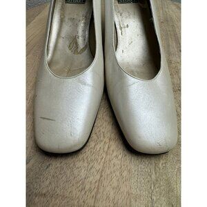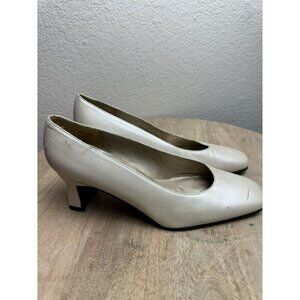 Stuart Weitzman Womens Ivory Leather Heels Size 36.5/6 C (Wide) Vintage