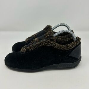 Stuart Weitzman Women's Leanto Black Suede Slip-On Fur Trim Flats Size 9