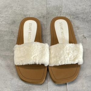 Stuart Weitzman Women's Natural Cammy Shearling Strap Slide Sandal SZ 6 B