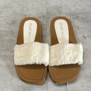 Stuart Weitzman Women's Natural Cammy Shearling Strap Slide Sandal SZ 6.5 B