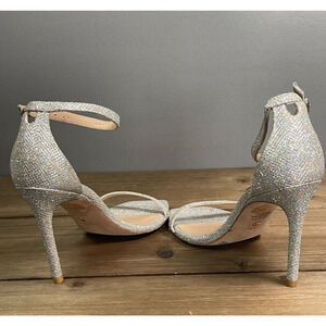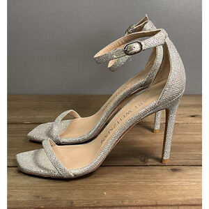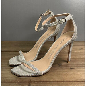 Stuart Weitzman Women's Nudistcurve Heeled Sandal Size 6.5 Crystal Silver 100 mm