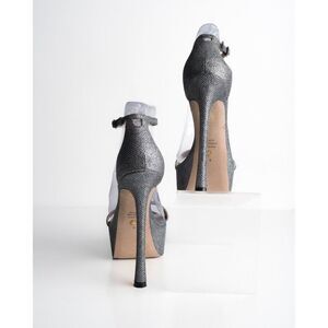 Stuart Weitzman nudistcurve glitter platform high heeled sandalsWomens Gray Glitter Strappy Platform Pump Heels