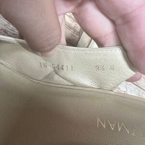 Stuart Weitzman Womens Patent Leather Peep Toe Slingback Wedges Beige Size 9.5