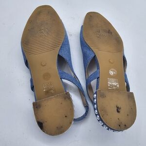 Stuart Weitzman Women’s Pearl Slingback Flats Denim Silver Toe Cap Size 9.5