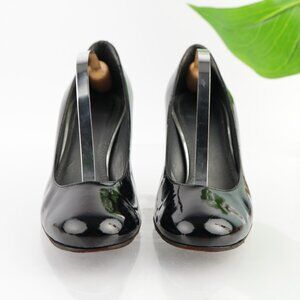 Stuart Weitzman Womens Pump Size 7.5 Black Patent Mid Heel Retro 90s Dress Shoe