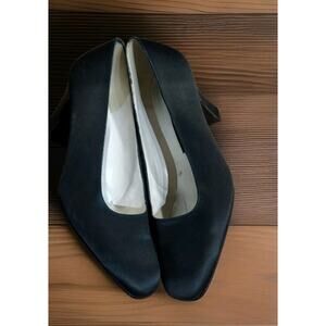 Stuart Weitzman Womens Pumps Size 10B Black Satin Upper Classic Square Toe Heels
