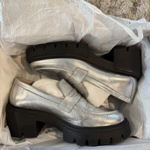 Stuart Weitzman Women's Soho Loafers, Silver, 8 Medium US