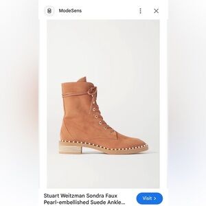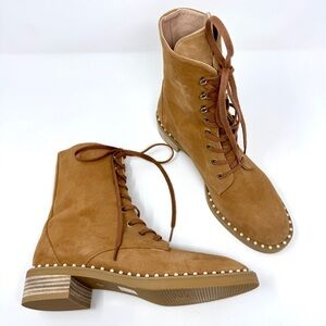 Stuart Weitzman Women's Sondra Faux Pearl Lace Up Combat Boots size 9