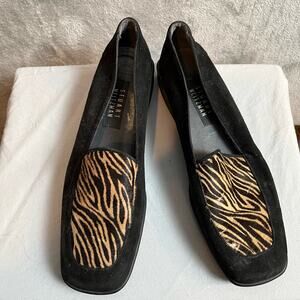 Stuart Weitzman Women’s Suede Calf Fur Accent Square Toe Loafers Black Size 8