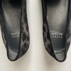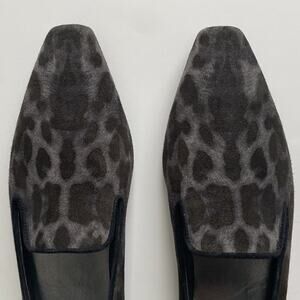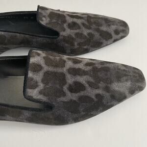 Stuart Weitzman Women's Suede Leopard Print Gray Black Flat Loafers Size 8.5