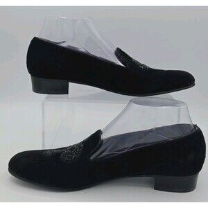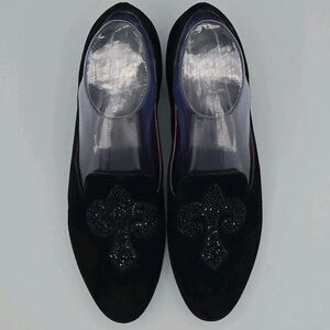The Stuart Weitzman Women's Sz 8 Narrow Lys Crystal Black Suede Fleur-de-lis flats are a stylish and versatile option for various occasions. With an almond toe shape and slip-on closure, these shoes are easy to wear and perfect for travel, weddings, parties, or even casual outings. The black suede material with beaded accents adds a touch of sophistication, while the embellishments make these flats stand out. Designed for women who appreciate both fashion and comfort, these slip-on flats are a must-have for any wardrobe.