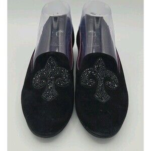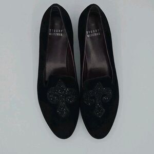 Stuart Weitzman Womens Sz 8 Narrow Lys Crystal Black Suede Fleur-de-lis