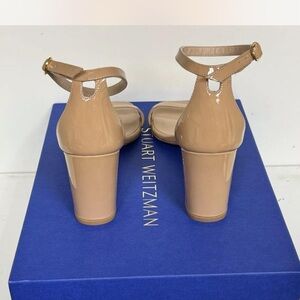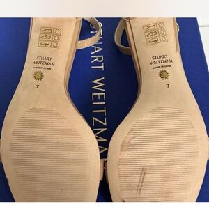 Elevate your style with these elegant Stuart Weitzman sandals. Featuring a chic tan color, these shoes are perfect for any occasion. Experience comfort and sophistication with every step.