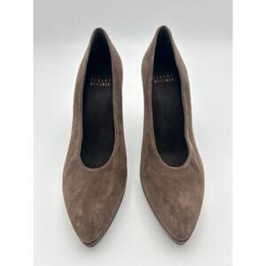 The product is a pair of Stuart Weitzman women's taupe brown suede heels in size 7M. These pointed toe pumps are made of leather and suede, featuring a stylish and elegant design perfect for various occasions. The brand Stuart Weitzman is known for its high-quality and fashionable footwear, making these heels a versatile and chic addition to any woman's shoe collection.