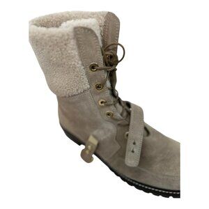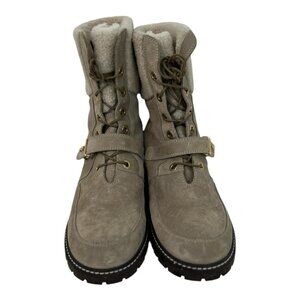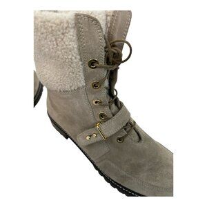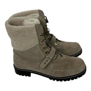 Stuart Weitzman Women's Viking Taupe Suede Sherpa Lace Up Boots | Sz 9.5