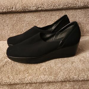 Stuart Weitzman Women's "Walker" Black Micro-Stretch Heeled Shoes Size 9.5
