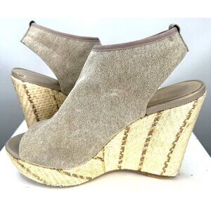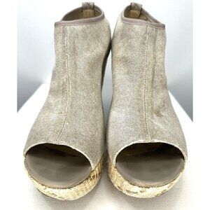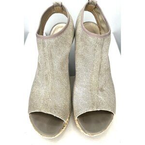 Stuart Weitzman Women's Wedge Heel Sandals Espadrille Platform Canvas Beige 9.5M